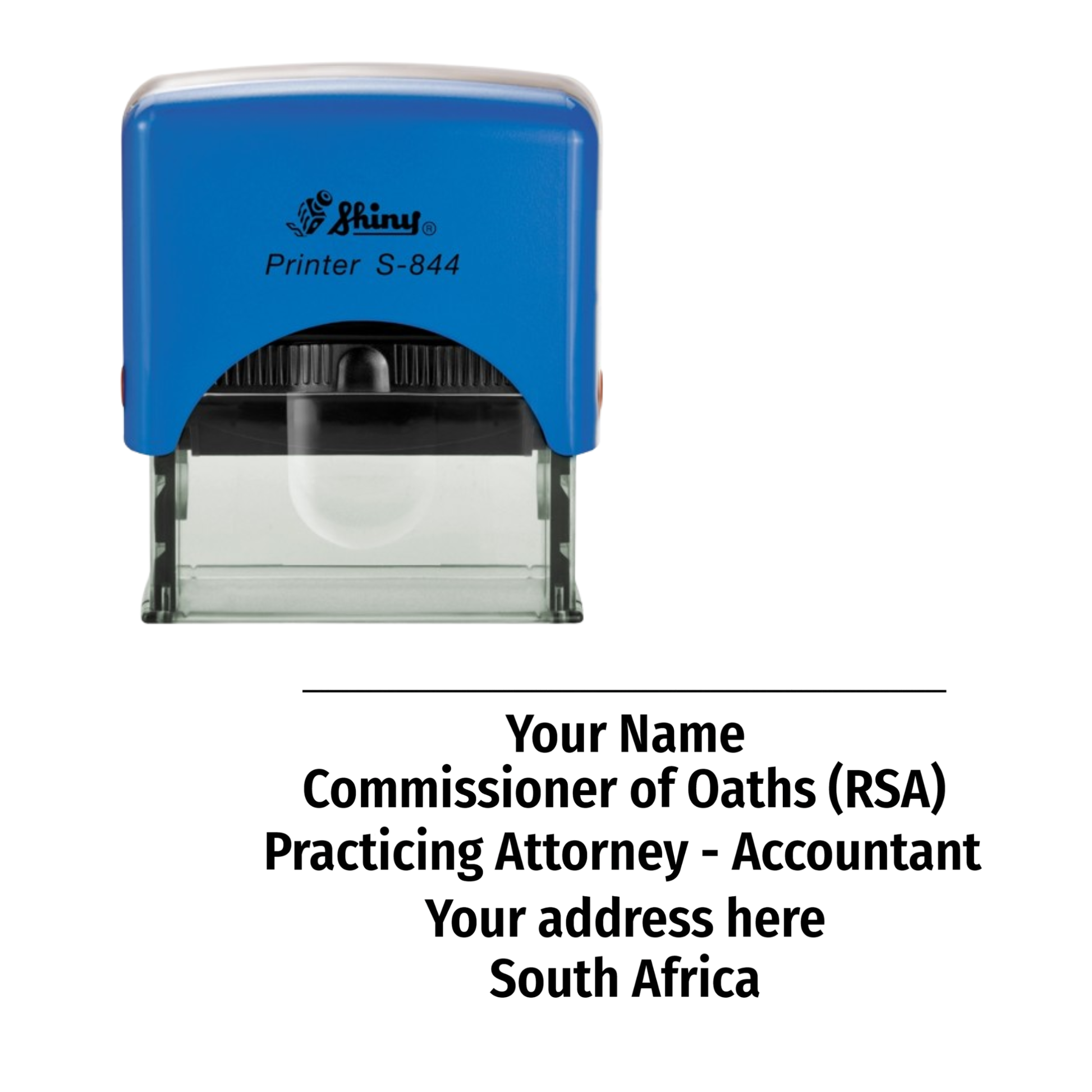 The Designation Stamp contains your full commissioner details exactly as required for official SA documentation.